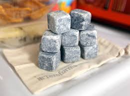They're made of soapstone so they won't scratch you glass and do a good job of cooling your scotch. I keep a rocks glass with 4 rocks in it in my freezer at all times. Just in case. This assures that the scotch will not be diluted, but will still be chilled. Richard Paterson suggests the adding of a small amount of cold, distilled water to your whisky. When I received my Copita Nosing Glass, it came with a pipette (eye dropper thing) intended for the scientific adding of drops of water.
